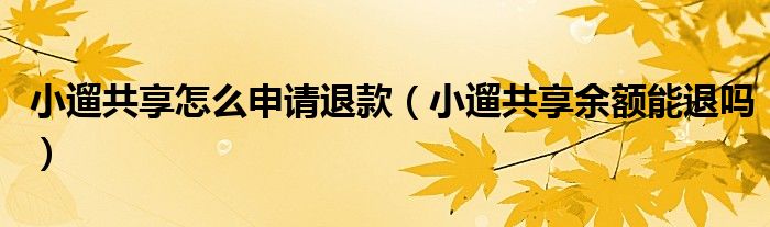 大家好,跳跳为你解答以上问题。小遛共享怎么申请退款,小遛共享余额能退吗这个问题很多人还不知道,现在让我们一起来看看吧!