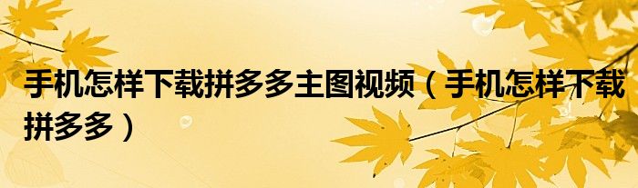 大家好,跳跳为你解答以上问题。手机怎样下载拼多多主图视频,手机怎样下载拼多多这个问题很多人还不知道,现在让我们一起来看看吧!