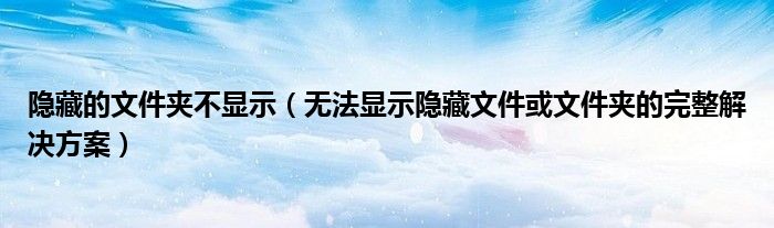 大家好,今天小悦来为大家解答以上问题。隐藏的文件夹不显示,无法显示隐藏文件或文件夹的完整解决方案很多人还不知道,现在让我们一起来看看吧!
