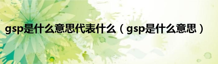 gsp是什么意思?什么是gsp?