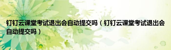 大家好,跳跳为你解答以上问题。钉钉云课堂考试退出会自动提交吗,钉钉云课堂考试退出会自动提交吗这个问题很多人还不知道,现在让我们一起来看看吧!
