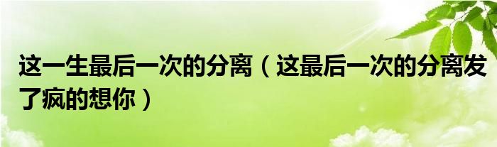 大家好,慧慧来为大家解答以上问题,这一生最后一次的分离,这最后一次的分离发了疯的想你很多人还不知道,现在让我们一起来看看吧!