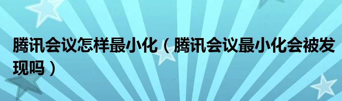 腾讯会议怎样最小化(腾讯会议最小化会被发现吗)