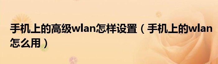 大家好,慧慧来为大家解答以上问题,手机上的高级wlan怎样设置,手机上的wlan怎么用很多人还不知道,现在让我们一起来看看吧!