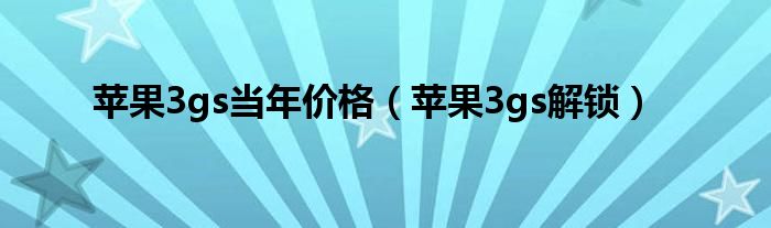 大家好,慧慧来为大家解答以上问题,苹果3gs当年价格,苹果3gs解锁很多人还不知道,现在让我们一起来看看吧!