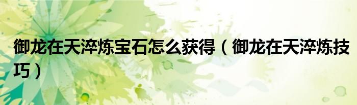 大家好,慧慧来为大家解答以上问题,御龙在天淬炼宝石怎么获得,御龙在天淬炼技巧很多人还不知道,现在让我们一起来看看吧!