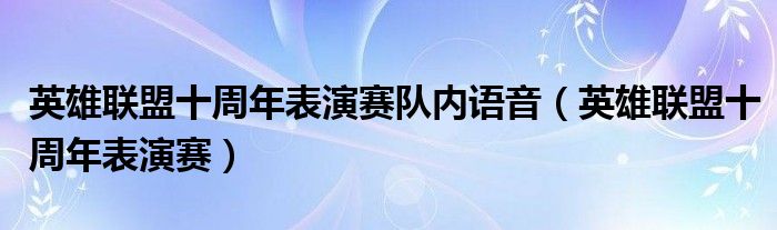 大家好,慧慧来为大家解答以上问题,英雄联盟十周年表演赛队内语音,英雄联盟十周年表演赛很多人还不知道,现在让我们一起来看看吧!