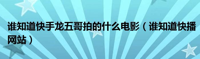 谁知道快手龙五哥拍的什么电影(谁知道快播网站)