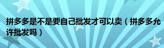 大家好,跳跳为你解答以上问题。拼多多是不是要自己批发才可以卖,拼多多允许批发吗这个问题很多人还不知道,现在让我们一起来看看吧!