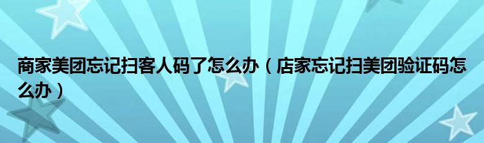 大家好,跳跳为你解答以上问题。商家美团忘记扫客人码了怎么办,店家忘记扫美团验证码怎么办这个问题很多人还不知道,现在让我们一起来看看吧!