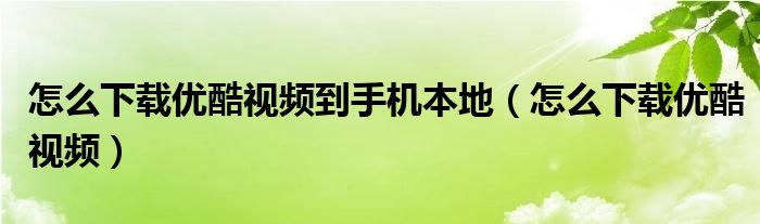 怎么下载优酷视频到手机本地(怎么下载优酷视频)