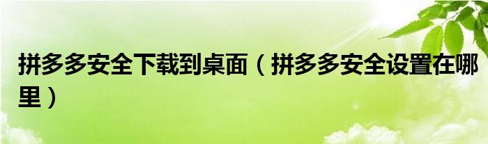 拼多多安全下载到桌面(拼多多安全设置在哪里)