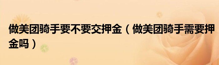 做美团骑手要不要交押金(做美团骑手需要押金吗)