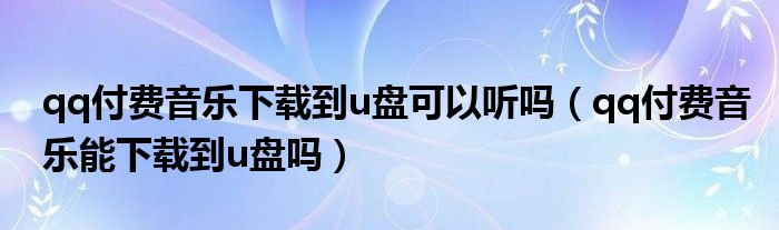 qq付费音乐下载到u盘可以听吗(qq付费音乐能下载到u盘吗)