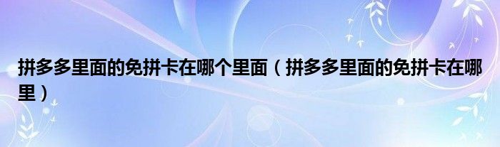 拼多多里面的免拼卡在哪个里面(拼多多里面的免拼卡在哪里)