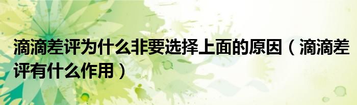滴滴差评为什么非要选择上面的原因(滴滴差评有什么作用)