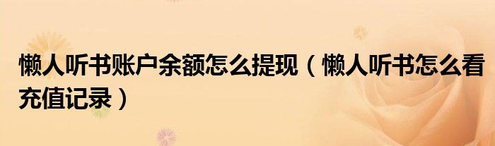 大家好,熊熊为你解答以上问题。懒人听书账户余额怎么提现,懒人听书怎么看充值记录这个很多人还不知道,现在让我们一起来看看吧!
