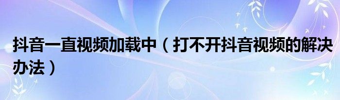 抖音一直视频加载中(打不开抖音视频的解决办法)