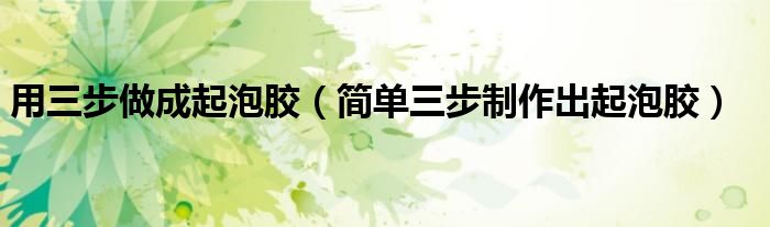大家好,小晋来为大家解答以下问题,关于用三步做成起泡胶,简单三步制作出起泡胶很多人还不知道,今天让我们一起来看看吧!