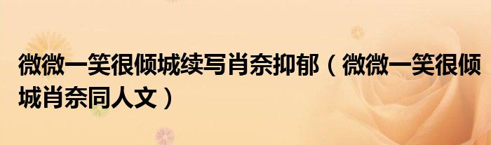 大家好,小晋来为大家解答以下问题,关于微微一笑很倾城续写肖奈抑郁,微微一笑很倾城肖奈同人文很多人还不知道,今天让我们一起来看看吧!