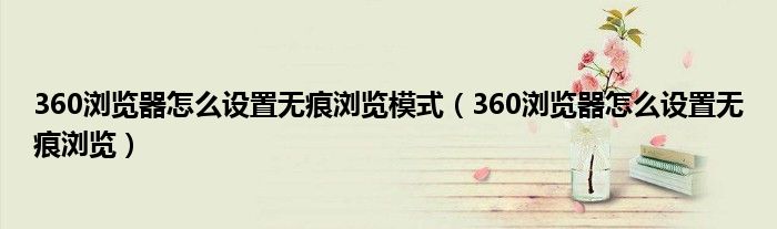 360浏览器怎么设置无痕浏览模式(360浏览器怎么设置无痕浏览)