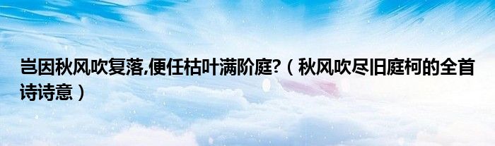 关于岂因秋风吹复落,便任枯叶满阶庭?,秋风吹尽旧庭柯的全首诗诗意这个很多人还不知道,今天菲菲来为大家解答以上的问题,现在让我们一起来看看吧!