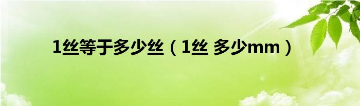 关于1丝等于多少丝,1丝 多少mm这个很多人还不知道,今天菲菲来为大家解答以上的问题,现在让我们一起来看看吧!
