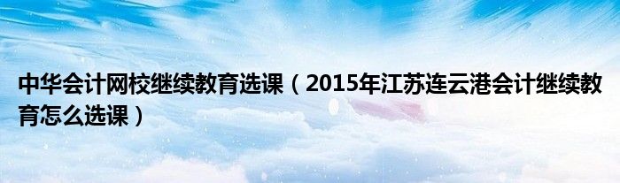 关于中华会计网校继续教育选课,2015年江苏连云港会计继续教育怎么选课这个很多人还不知道,今天菲菲来为大家解答以上的问题,现在让我们一起来看看吧!