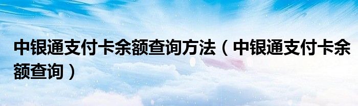 大家好,小晋来为大家解答以下问题,关于中银通支付卡余额查询方法,中银通支付卡余额查询很多人还不知道,今天让我们一起来看看吧!