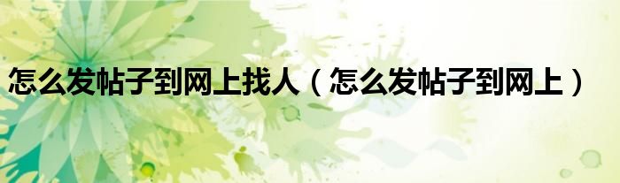 大家好,小晋来为大家解答以下问题,关于怎么发帖子到网上找人,怎么发帖子到网上很多人还不知道,今天让我们一起来看看吧!