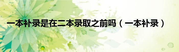 关于一本补录是在二本录取之前吗,一本补录这个很多人还不知道,今天菲菲来为大家解答以上的问题,现在让我们一起来看看吧!