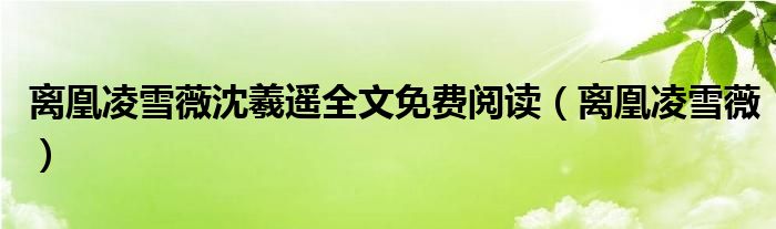 关于离凰凌雪薇沈羲遥全文免费阅读,离凰凌雪薇这个很多人还不知道,今天菲菲来为大家解答以上的问题,现在让我们一起来看看吧!