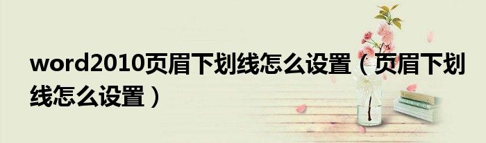 大家好,小晋来为大家解答以下问题,关于word2010页眉下划线怎么设置,页眉下划线怎么设置很多人还不知道,今天让我们一起来看看吧!