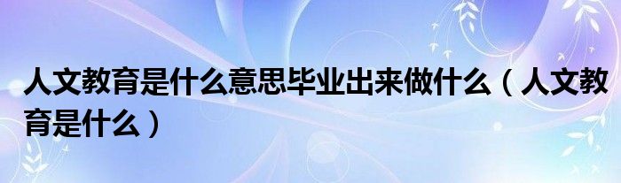 关于人文教育是什么意思毕业出来做什么,人文教育是什么这个很多人还不知道,今天菲菲来为大家解答以上的问题,现在让我们一起来看看吧!