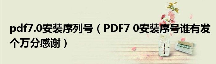pdf7.0安装序列号(PDF7 0安装序号谁有发个万分感谢)