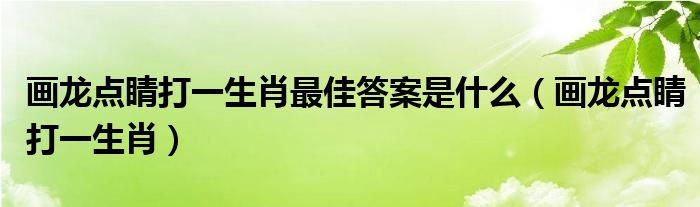 关于画龙点睛打一生肖最佳答案是什么,画龙点睛打一生肖这个很多人还不知道,今天菲菲来为大家解答以上的问题,现在让我们一起来看看吧!