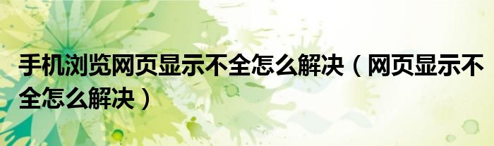 手机浏览网页显示不全怎么解决(网页显示不全怎么解决)