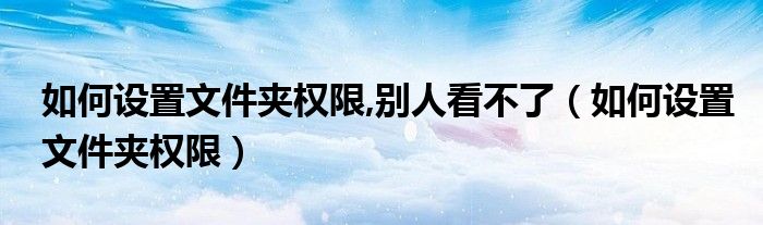 如何设置文件夹权限,别人看不了(如何设置文件夹权限)