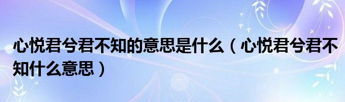 关于心悦君兮君不知的意思是什么,心悦君兮君不知什么意思这个很多人还不知道,今天菲菲来为大家解答以上的问题,现在让我们一起来看看吧!