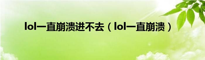 lol一直崩溃进不去(lol一直崩溃)