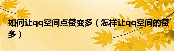 大家好,小晋来为大家解答以下问题,关于如何让qq空间点赞变多,怎样让qq空间的赞多很多人还不知道,今天让我们一起来看看吧!