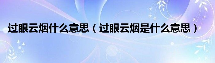过眼云烟什么意思(过眼云烟是什么意思)