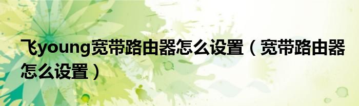 大家好,来宝来为大家解答以下问题,飞young宽带路由器怎么设置,宽带路由器怎么设置很多人还不知道,今天让我们一起来看看吧!