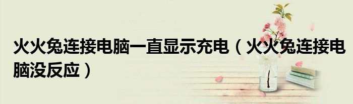 关于火火兔连接电脑一直显示充电,火火兔连接电脑没反应这个很多人还不知道,今天菲菲来为大家解答以上的问题,现在让我们一起来看看吧!