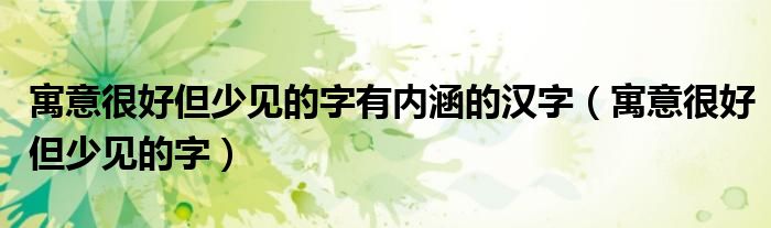 关于寓意很好但少见的字有内涵的汉字,寓意很好但少见的字这个很多人还不知道,今天菲菲来为大家解答以上的问题,现在让我们一起来看看吧!