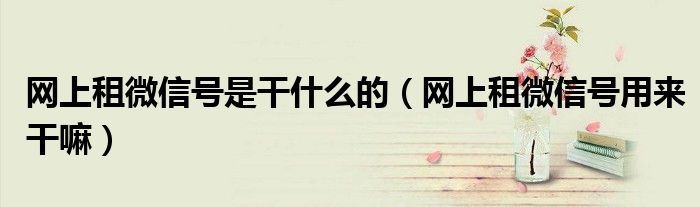 网上租微信号是干什么的(网上租微信号用来干嘛)