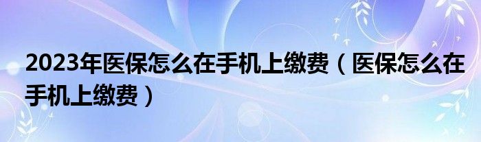 2023年医保怎么在手机上缴费(医保怎么在手机上缴费)