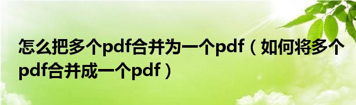 怎么把多个pdf合并为一个pdf(如何将多个pdf合并成一个pdf)