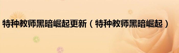 特种教师黑暗崛起更新(特种教师黑暗崛起)