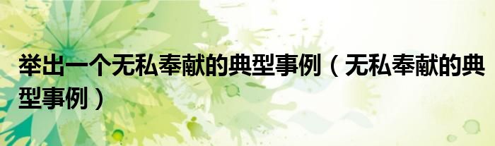 关于举出一个无私奉献的典型事例,无私奉献的典型事例这个很多人还不知道,今天菲菲来为大家解答以上的问题,现在让我们一起来看看吧!